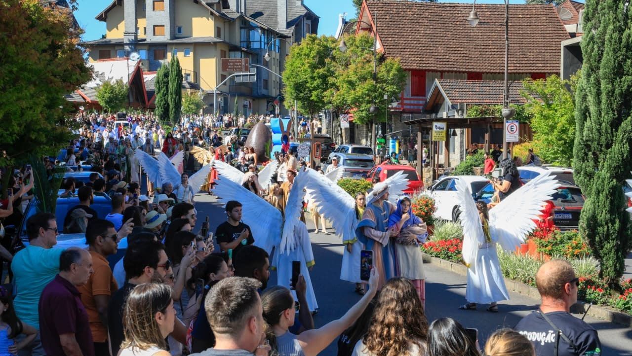 A Páscoa em Canela começa oficialmente neste sábado (21). O destaque do primeiro final de semana fica por conta da apresentação do Desfile Encantado de Páscoa, que passará às 17 horas pela avenida Osvaldo Aranha - com partida da Catedral de Pedra. Também está marcada uma cerimônia para abrir oficialmente o evento, às 16 horas, na esquina das ruas Felisberto Soares e Dona Carlinda. Comunidade canelense e visitantes são convidados a prestigiar a Páscoa em Canela, até o dia 19 de abril. O Desfile Encantado de Páscoa, uma novidade neste ano, apresenta um enredo que busca incentivar a reflexão sobre o verdadeiro sentido do período pascal e despertar a alegria dos espectadores que comparecerem para assisti-lo, conforme informações da Secretaria de Turismo e Cultura de Canela. Na produção do desfile estão envolvidos 80 artistas, que estarão fantasiados para compor com as alegorias coloridas preparadas para a atração. A apresentação acontecerá em cinco sábados durante a programação da Páscoa em Canela: 21 e 28 de março e 4, 11 e 18 de abril, sempre às 17 horas.